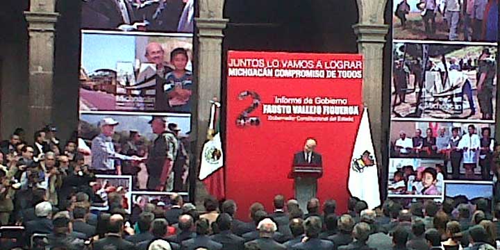 Fausto Vallejo Figueroa, gobernador del Estado, emitió un mensaje a los michoacanos con motivo del Segundo Informe de la administración