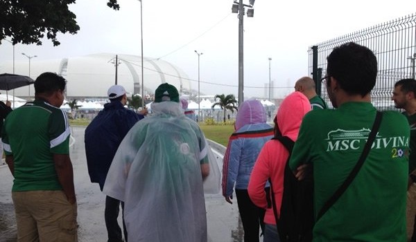 Los miles de seguidores aztecas que comenzaron a colorear de verde las inmediaciones de la Arena Das Dunas mejor se guarecían en los techos de cualquier tienda que se encontraban en el camino hacia las entradas.