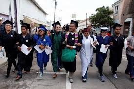 La estudiante de 22 años era una de los treinta dreamers vestidos con togas y birretes, algunos con hijos en brazos, que cruzaron desde Tijuana, México, la garita internacional de Otay este lunes al filo del mediodía para pedir asilo en Estados Unidos. Habiendo vivido ahí desde su infancia, habían regresado a México porque no tenían posibilidades de seguir estudiando o desarrollarse por no ser ciudadanos estadounidenses.